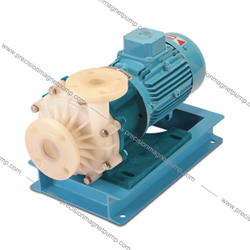 تُصنع المضخات باستخدام مواد بلاستيكية حرارية عالية المقاومة للميكانيكا والكيميائية، مثل GFRPP أو PVDF، وهي مناسبة لدرجات حرارة تتراوح بين 0 و120 درجة مئوية، حسب نوع المادة. أما الأجزاء غير البلاستيكية الملامسة للسائل المضخوخ، فتُصنع باستخدام مواد مقاومة للتآكل ممتازة، مثل سيراميك الألومينا عالي النقاء بنسبة 99.7% وGFRPTFE.